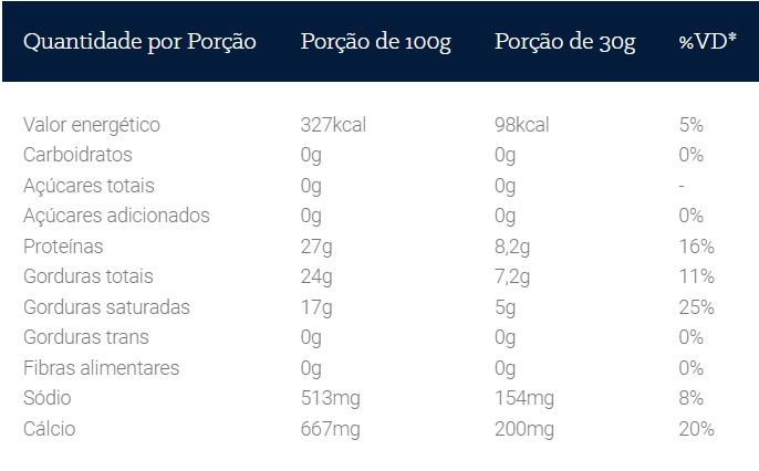 * Percentual de valores diários fornecidos pela porção.